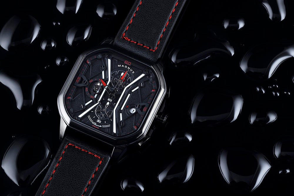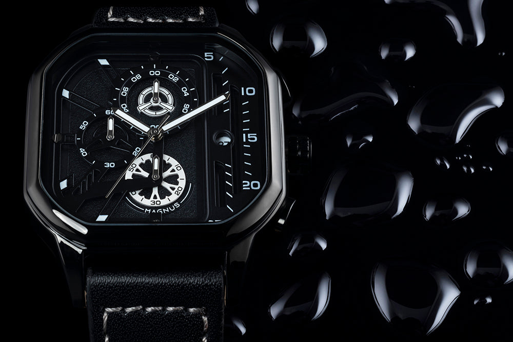 Este reloj multifunción Magnus Gen II tiene una resistencia al agua de 3 ATM o 30 metros, por lo que es adecuado para lavarse las manos y nadar si no se producen grandes variaciones de temperatura. No apto para bucear.